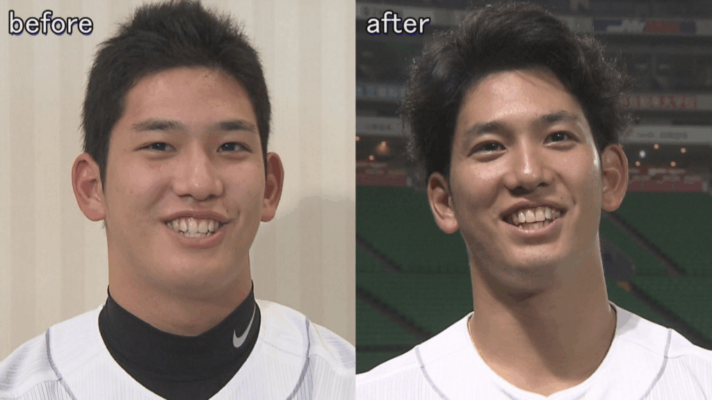 左側の写真が入団当初の写真です。高校卒業後すぐなので坊主が伸びてきたような感じになっていますね。